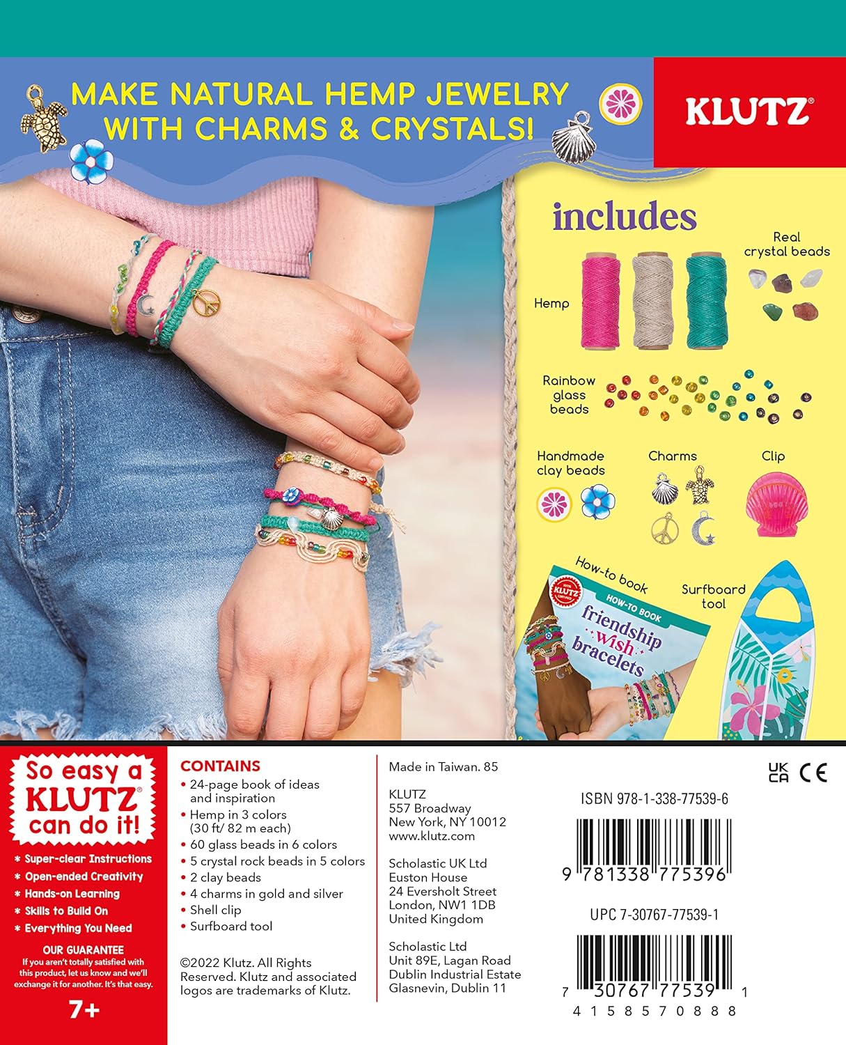 With three colors of hemp, a rainbow of iridescent beads, handmade clay beads, gold and silver charms, and real crystal rock beads, crafters can customize their own creations to suit their style.