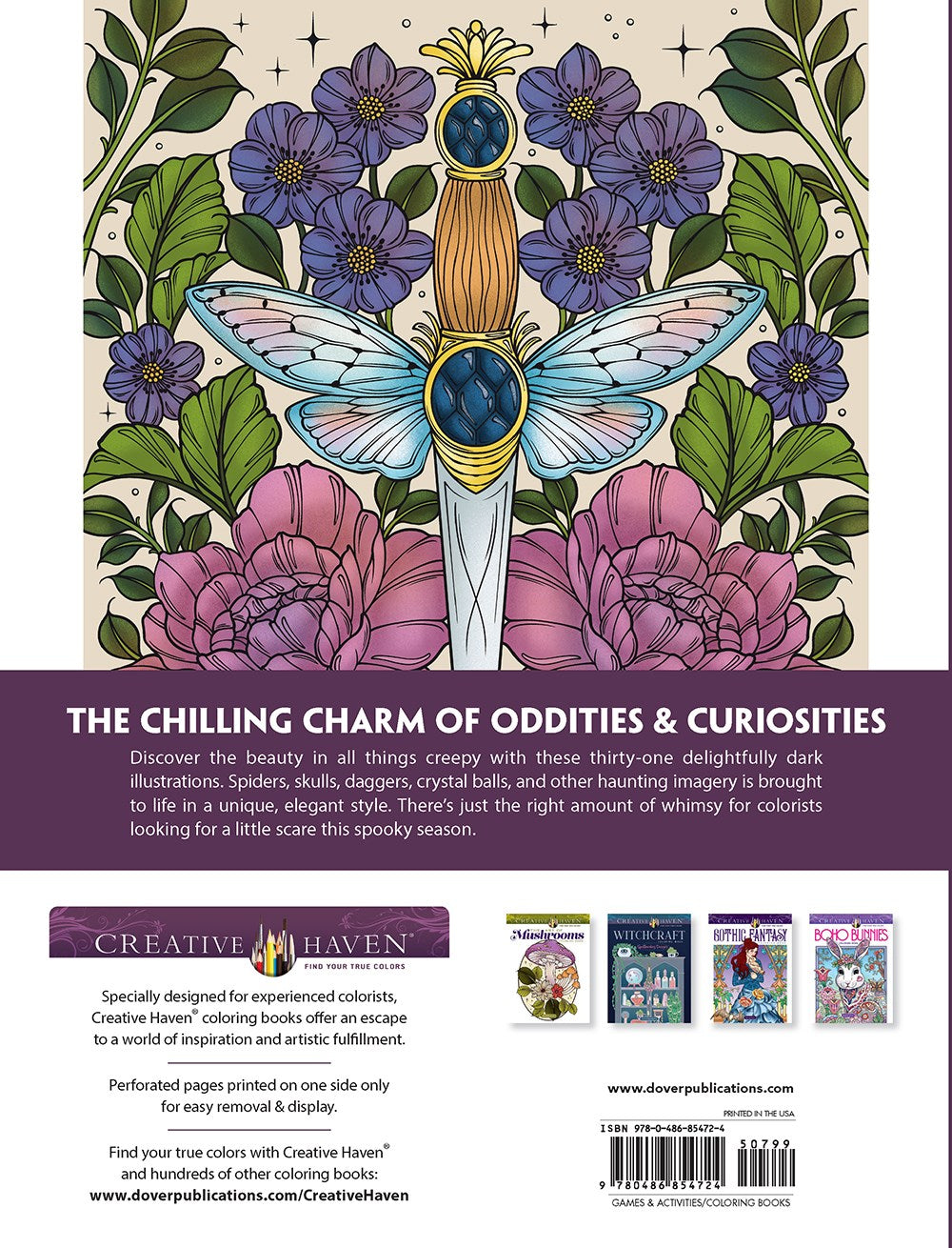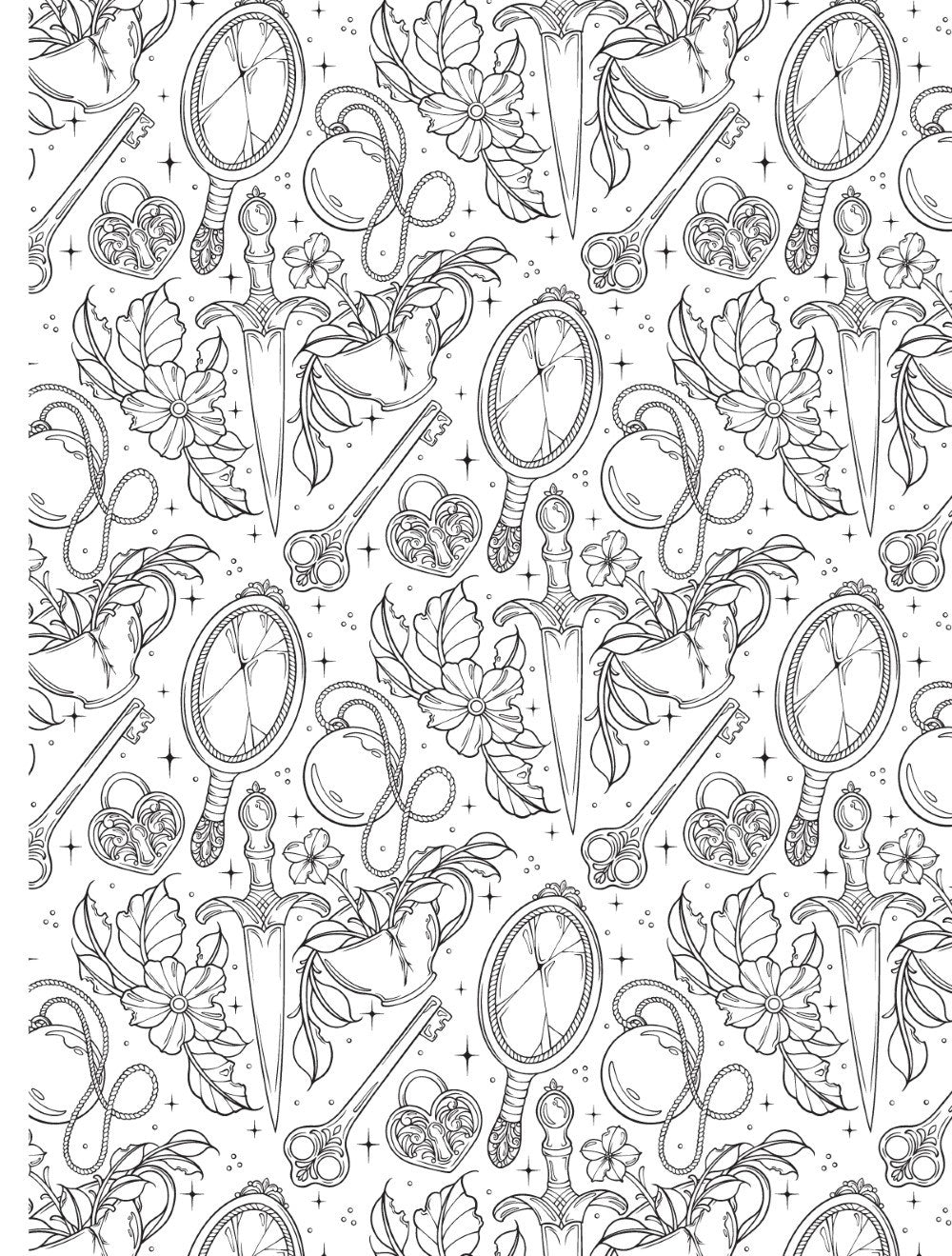 Thirty-one delightfully dark illustrations feature spiders, skeletons, daggers, crystal balls, and other creatively creepy imagery, all brought to life in a unique, elegant style. The perfect companion to spooky season, there's just the right amount of whimsy for colorists looking for a little scare — and a lot of style.